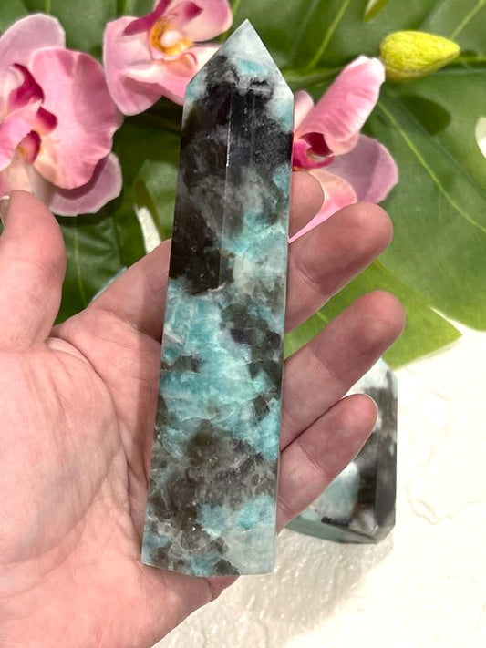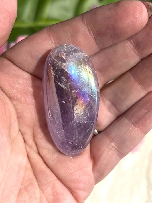 Aqua Aura Amethyst Palm Stone for Joyful Spiritual Connection