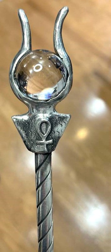 Hathor Lotus Ankh Wand in Lapis, Clear Quartz or Rose Quartz 10.5"