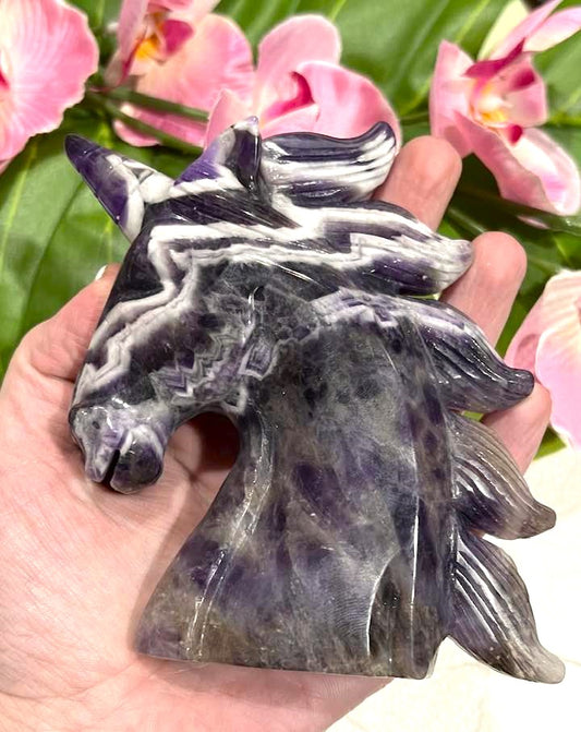 Unicorn Extra Large in Chevron Amethyst, Rose Quartz or Yellow Fluorite 4.5"