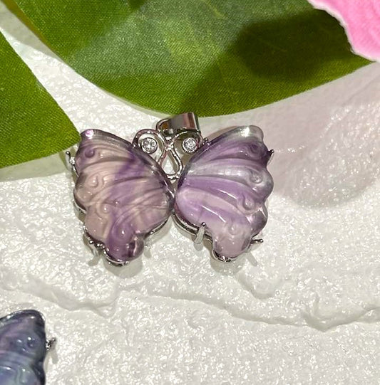 Rainbow Fluorite Butterfly Pendant for Sacred Transformation