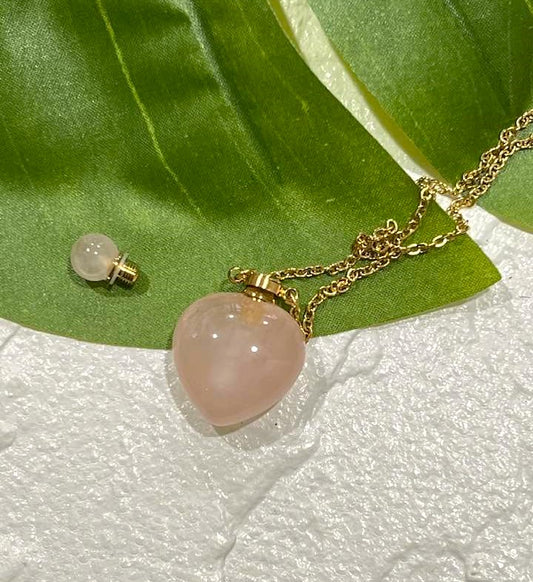 Rose Quartz Bottle Heart Necklace