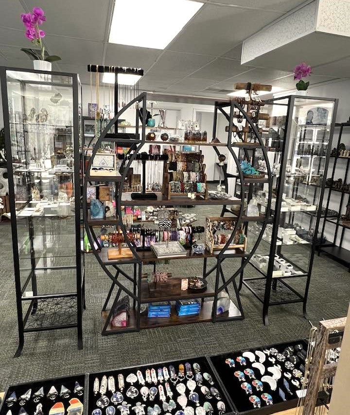 At Aura Song Gifts, we carry a wide variety of unique gifts and sacred tools! Imagine the joy of spoiling yourself or someone you love with natural stone and sterling jewelry, crystals & stones, crystal water bottles, sacred geometry, wands, bath & body products, artisan teas & accessories, tarot, oracle cards & runes, pendulums & divination tools, books, coloring books, journals & stationary, an apothecary with 30 different sacred herbs, essential oils, incense and incense holders, smoke cleansing herbs and supplies, candles and accessories,, statuary and plushies, salt lamps, keepsake boxes, perfume bottles, window chimes, suncatchers & dreamcatchers, totes and bags, as well as a clearance section with assorted products at 50% OFF!